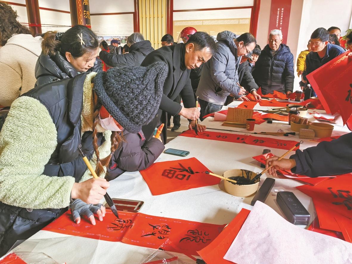 写春联、贴福字可是迎新过节的传统习俗。此次迎新嘉年华活动,唐叶村村委特意邀请到宁波沙孟海书院的院长钱丁盛以及书院的各位书法大师来到唐氏宗祠,为居民们写对联、送福字。书法家们饱含创作热情,挥毫泼墨,为居民们送上了一份份新春祝福,排队等候的居民络绎不绝。手写新春对联让居民们欢喜不已,各式福字更是令人挑花了眼,活动现场洋溢着浓厚的新春气息。